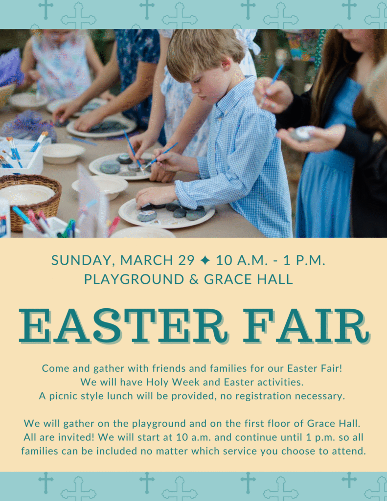 Kindergarteners and their families are invited to an afternoon of learning more about Worship and Sacraments. We will gather in the Fellowship Hall following 11 a.m. worship, share a meal together and learn about our two Sacraments: Baptism and The Lord’s Supper. Pastor Nicole and Mrs. Suzy will lead this hands-on, experiential learning event. At the close of the afternoon, kindergarteners will receive a stone to mark this special milestone in their faith journey.