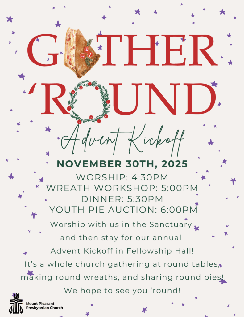 On Sunday, December 29 we will only have one service at 10 a.m. in the Sanctuary. There will be no Sunday School.