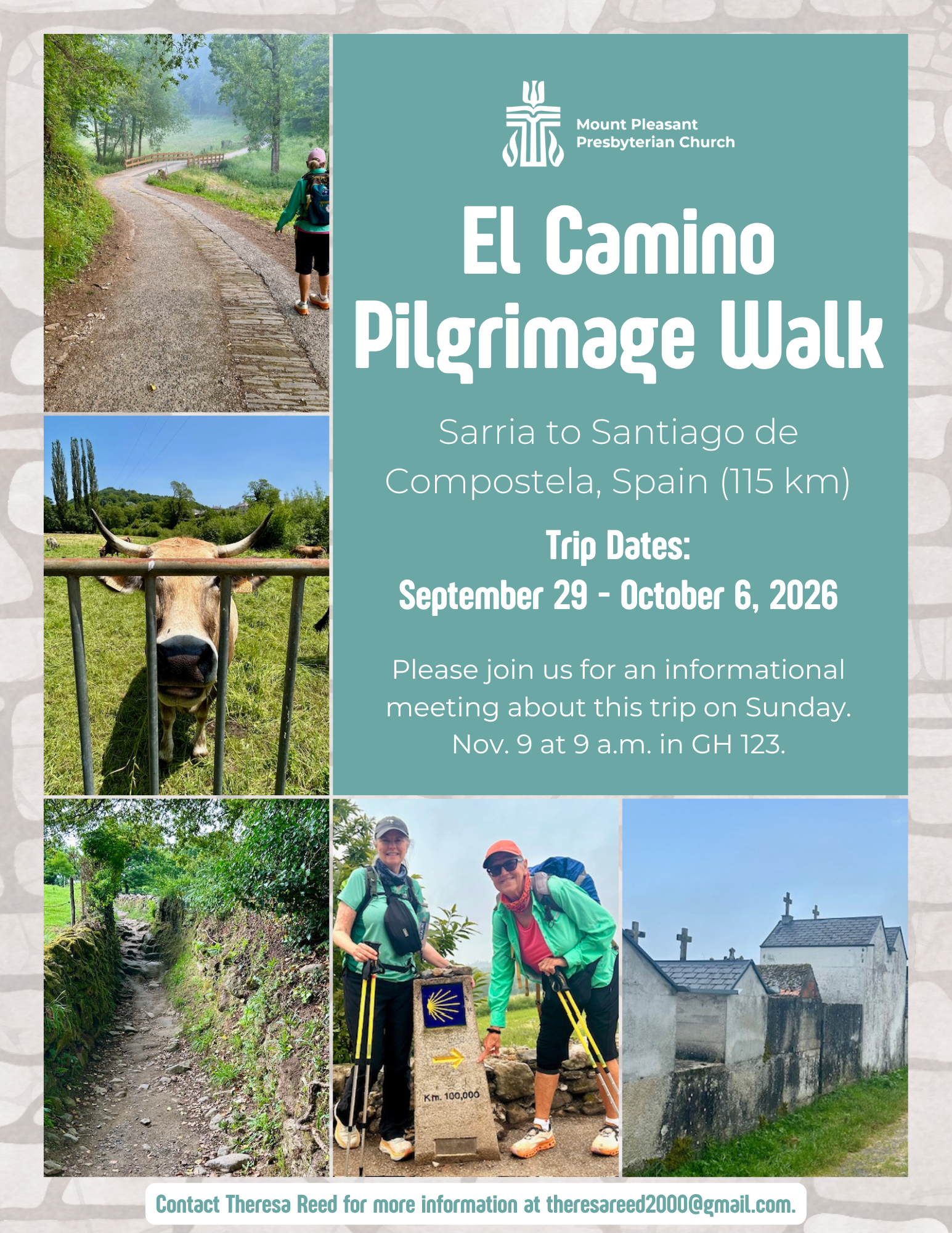 Join MPPC on September 29 - October 6, 2026 for a 115 km religious pilgrimage walk to Santiago de Compostela, Spain, for 8 days / 7 nights on the world famous Camino. Please join us for an informational meeting on November 9th in GH 123 at 9 a.m. Contact Theresa Reed for more information at […]